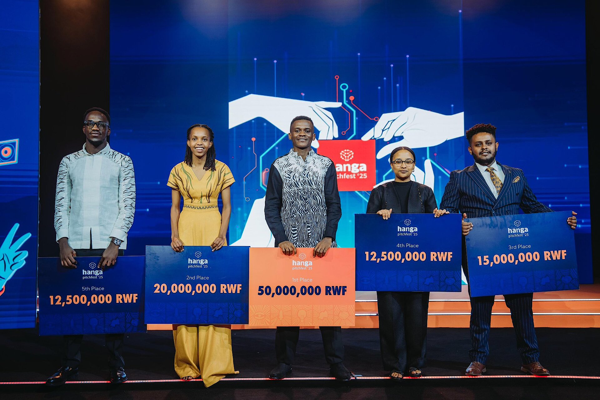 At the heart of the event were the top 5 final pitches, selected after six intensive weeks of bootcamps, field visits, expert coaching, and rigorous elimination rounds. The five teams: Re-Banatex, NEEM, Ambucycle, Ingoga Technologies, and Nabsil stood out among hundreds of applicants for their ingenuity, market-readiness, and potential to solve challenges facing Rwanda and the continent.